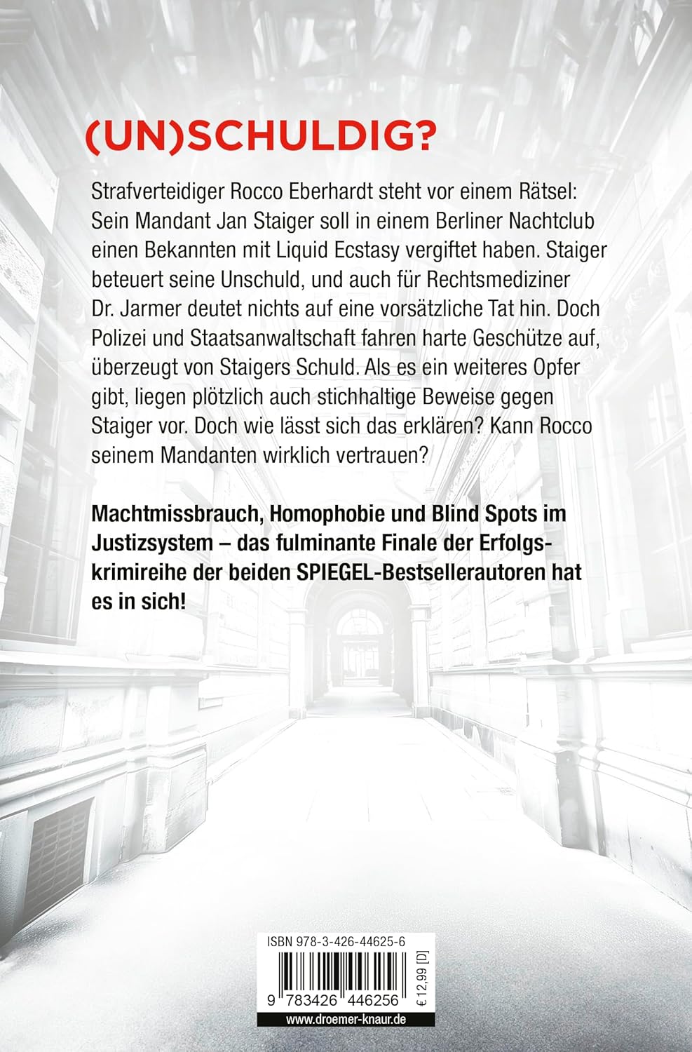 Im 5. Justiz-Krimi des SPIEGEL-Bestseller-Duos Florian Schwiecker & Michael Tsokos müssen Anwalt Rocco Eberhardt und Rechtsmediziner Dr. Justus Jarmer gegen Machtmissbrauch, Blind Spots und Vorurteile im Justizsystem kämpfen.