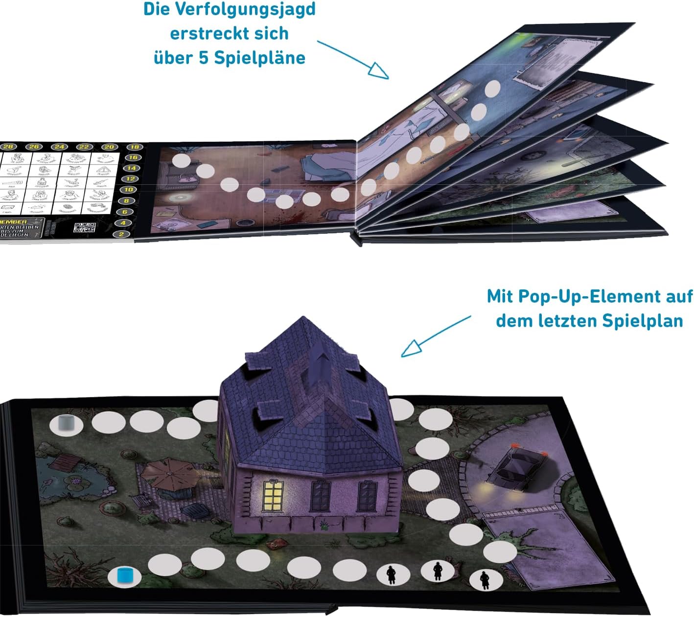 Innovatives Pop-up-Design – Schlagen Sie sich schnell durch die 5 Kapitel des buchgroßen Spielbretts – die stimmungsvolle Musik unterstreicht den Wettlauf gegen Zeit und Täter.