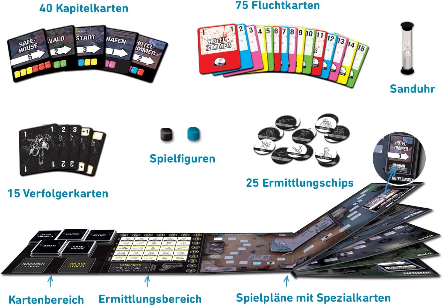 Immer wieder explosiv – Die Verfolgungsjagd nimmt jedes Mal einen anderen Verlauf, wenn Sie spielen. Ob mit Freunden oder der Familie – ein Thrillerspiel für 2-4 Spieler ab 12 Jahren.
