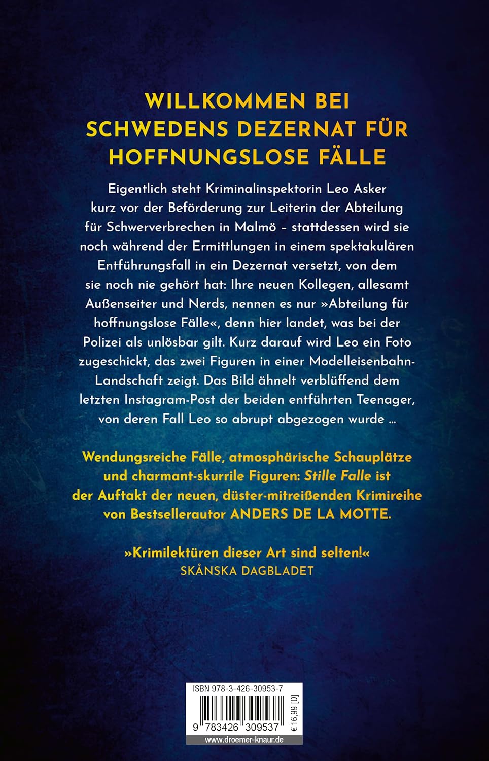 Wendungsreiche Fälle, atmosphärische Schauplätze und charmant-skurrile Figuren: Stille Falle ist der 1. Band der neuen, düster-mitreißenden Krimireihe von Bestsellerautor Anders de la Motte.