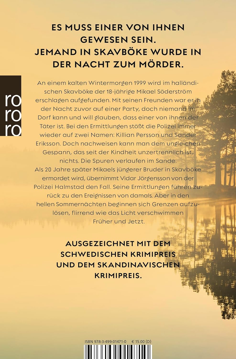 An einem kalten Wintermorgen 1999 wird im halländischen Skavböke der 18-jährige Mikael Söderström aufgefunden. Mit seinen Freunden war er in der Nacht zuvor auf einer Party, doch niemand im Dorf kann und will glauben, dass einer von ihnen der Täter ist. Bei den Ermittlungen stößt die Polizei immer wieder auf zwei Namen: Killian Persson und Sander Eriksson. Doch nachweisen kann man dem ungleichen Gespann, das seit der Kindheit unzertrennlich ist, nichts. Die Spuren verlaufen im Sande.